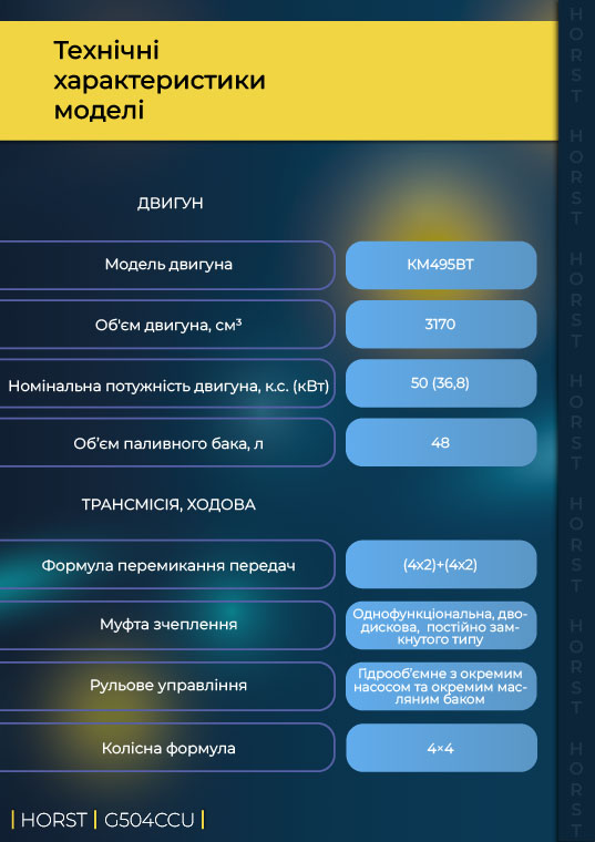 - Тип двигуна дизельний, 4-тактний, з безпосереднім упорскуванням