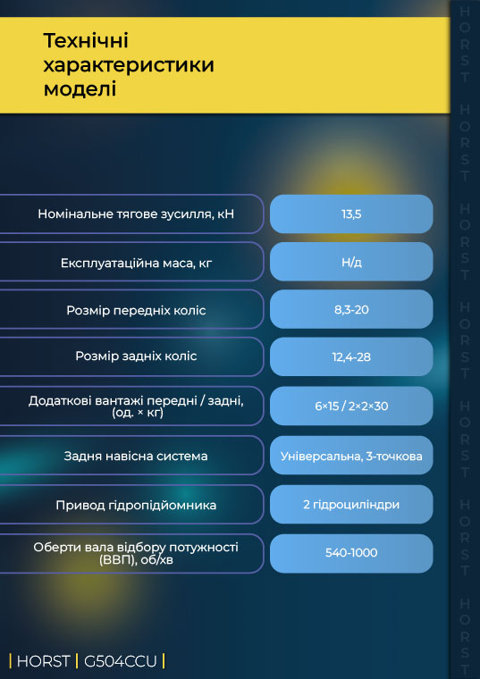 - Розмір шин передніх 8.3-20, задніх 12,4-28